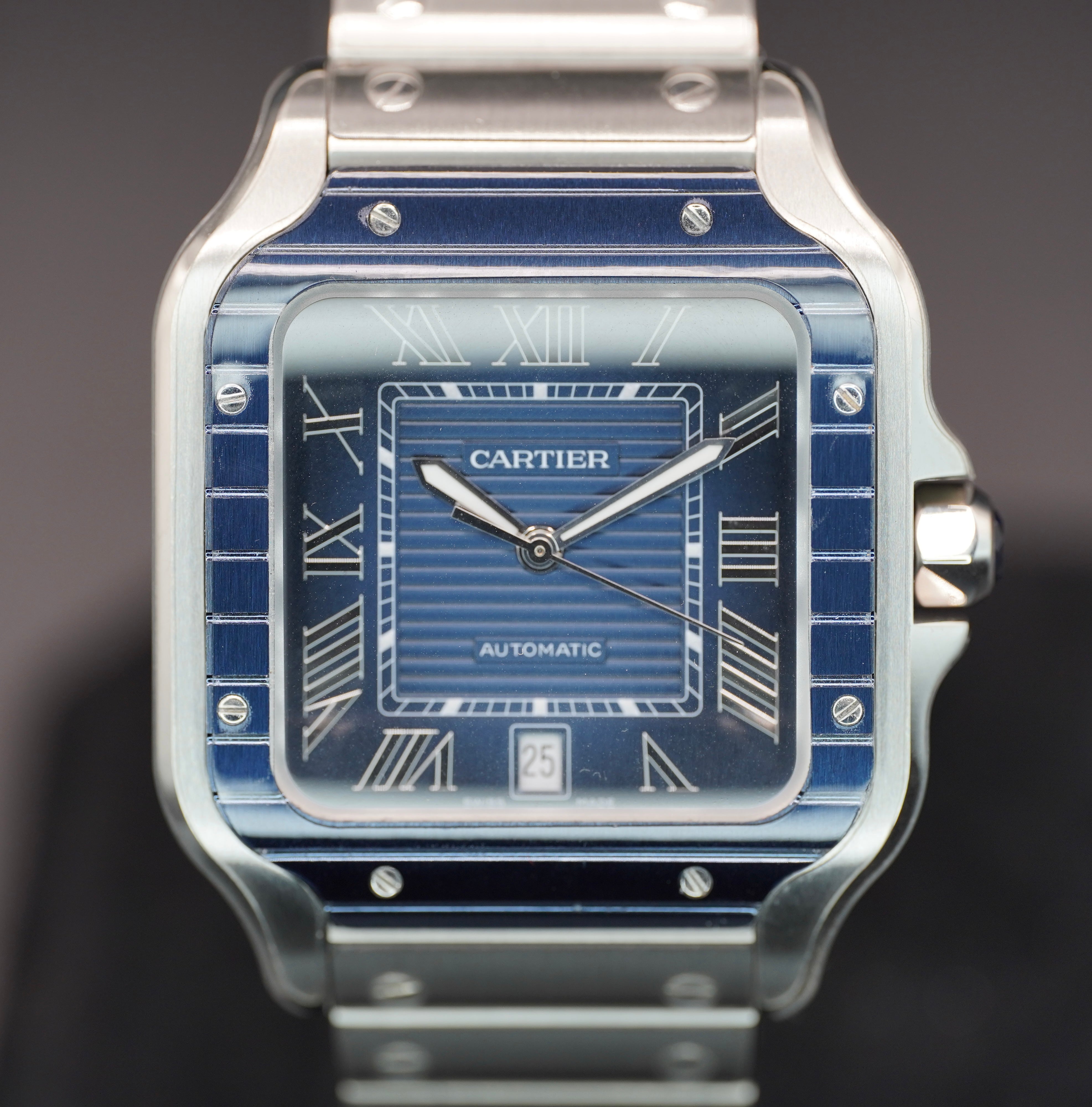 Cartier Santos Blue Dial Blue Bezel Stainless Steel WSSA0048